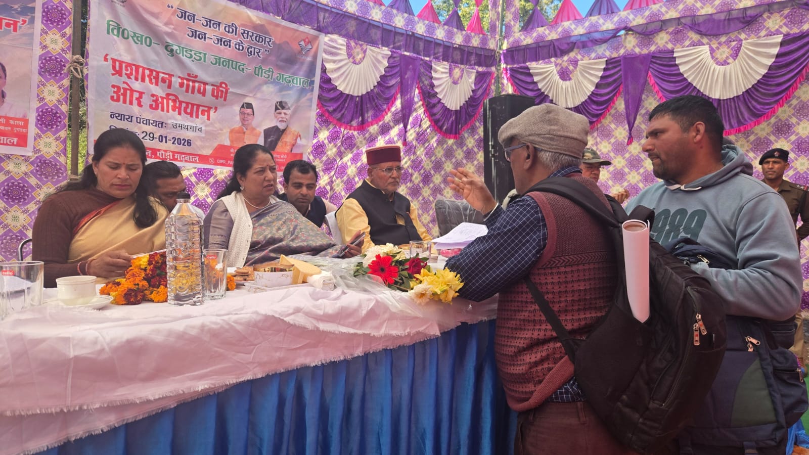 शिविर में जिला सहकारी बैंक के पूर्व अध्यक्ष नरेंद्र सिंह रावत के आकस्मिक निधन पर दो मिनट का मौन रखा गया। जिसके चलते कार्यक्रम को सादगीपूर्ण ढंग से संपन्न किया गया। शिविर में कुल 19 शिकायतें दर्ज हुईं, जिनमें से अधिकांश का निस्तारण मौके पर ही कर दिया गया। शेष शिकायतों को संबंधित विभागों को भेजते हुए शीघ्र निस्तारण के निर्देश दिए गए। शिविर की अध्यक्षता उपजिलाधिकारी थलीसैंण कृष्णा त्रिपाठी ने की। उन्होंने ग्रामीणों की समस्याएं गंभीरता से सुनीं और अधिकारियों को निर्देशित किया कि प्राप्त शिकायतों का समयबद्ध समाधान सुनिश्चित किया जाए। उपजिलाधिकारी ने कहा कि बहुउद्देशीय शिविरों से ग्रामीणों को अपनी समस्याओं के समाधान के लिए बार-बार मुख्यालय न जाना पड़े और योजनाओं का लाभ गांव में ही उपलब्ध हो सके। इस दौरान उन्होंने विभागीय स्टॉलों का निरीक्षण भी किया।